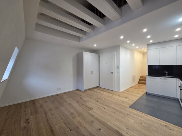 Im Flecken Bad Zurzach vermieten wir nach Vereinbarung die frisch sanierte 2.5-Zimmer-Maisonettewohnung im 1. & 2. Dachgeschoss.