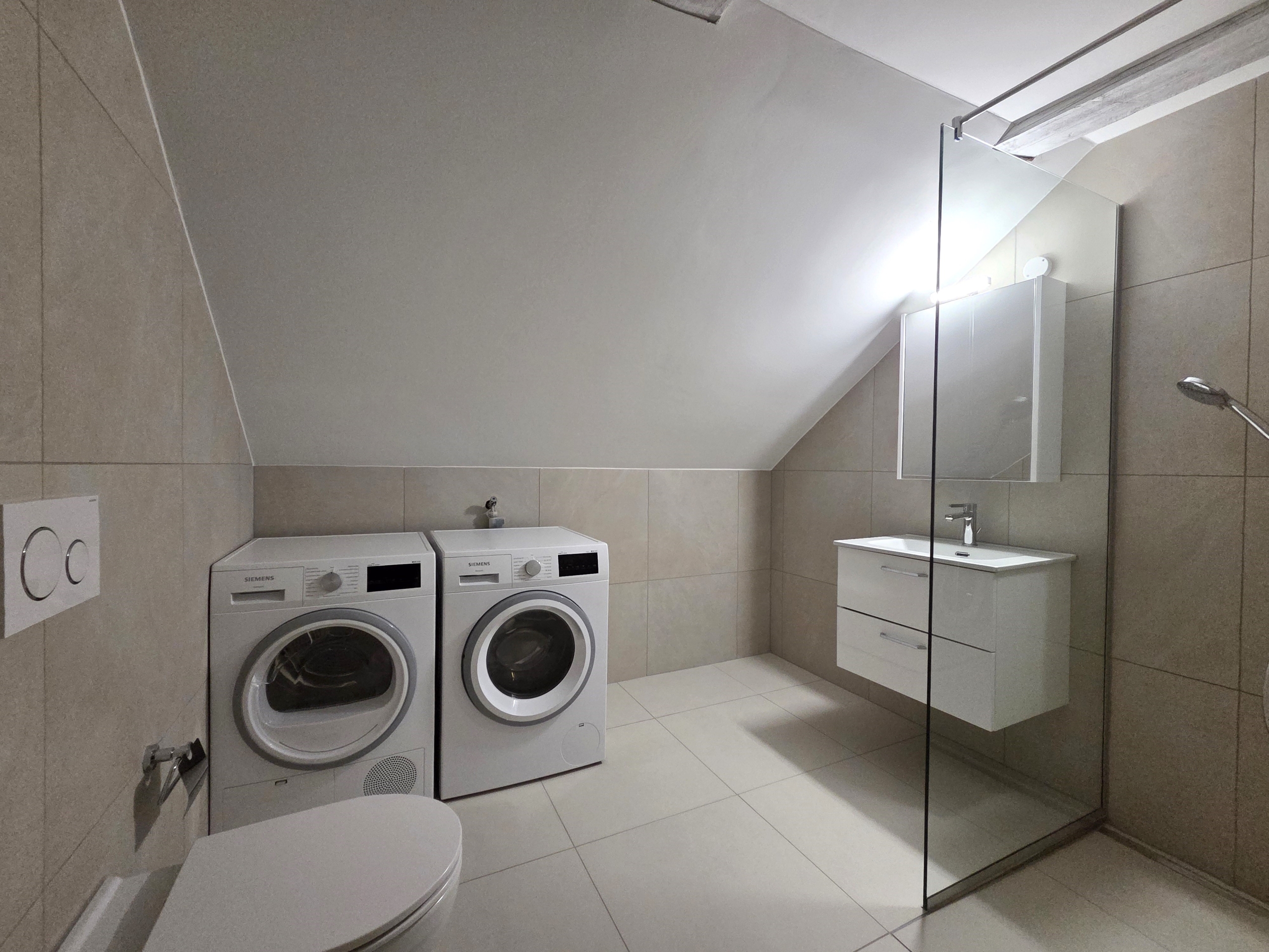 • Badezimmer mit Dusche, Lavabo inkl. Unterbauschrank, Toilette und eigenem Waschturm (WA/WT)