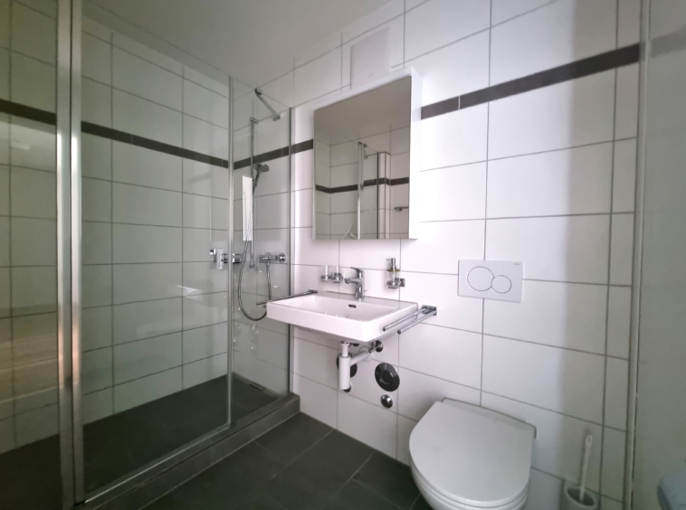 - Badezimmer mit Dusche, WC und Lavabo