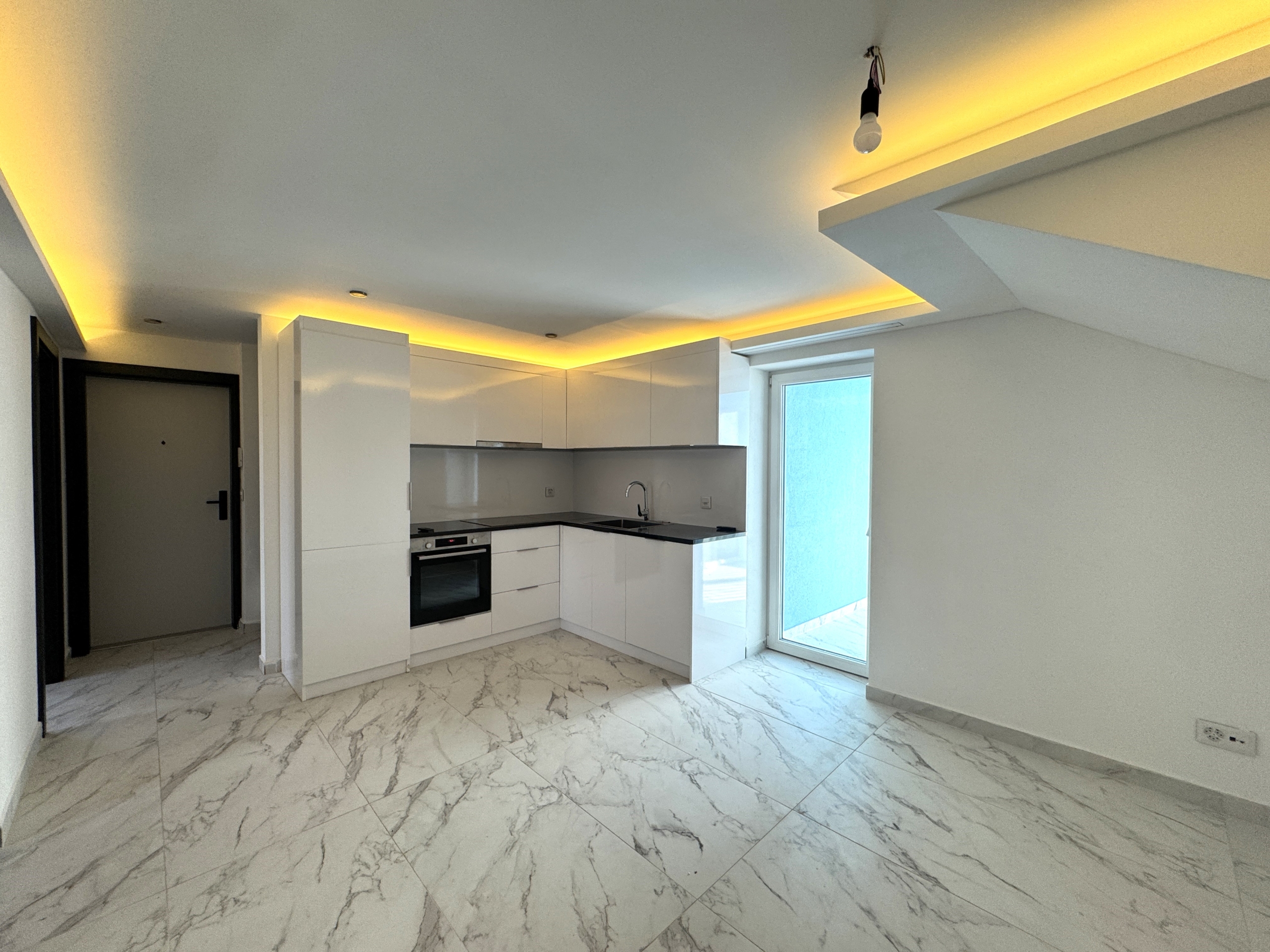 - LED-Lichtkonzept in der Küche sowie Wohnzimmer mit individueller Farbauswahl