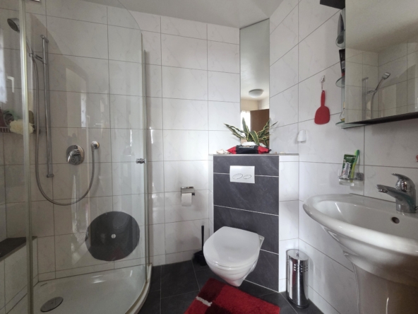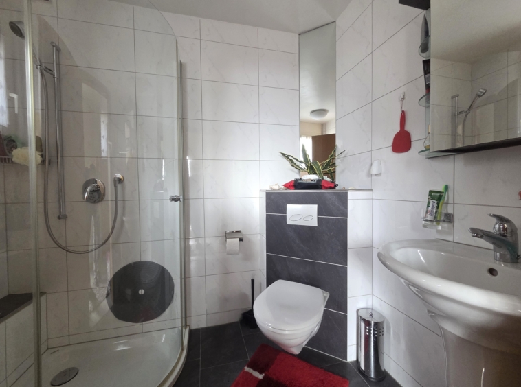- Badezimmer mit Dusche, Lavabo und Toilette